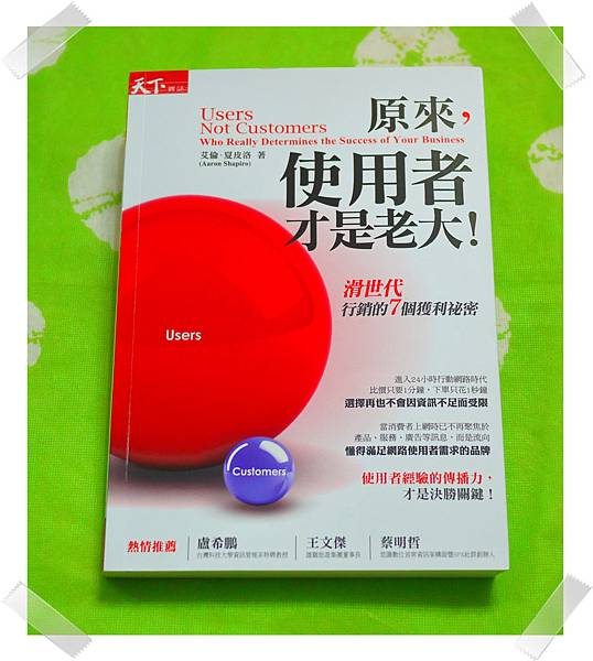 原書名:Users not customers who really determines the success of your business。言簡意賅,使用者才是決定企業主商品成功的Key man。以往的行銷模式從商品行銷演變到廣宣行銷,在數位世代則轉化成使用者行銷。讓使用者對商品有深刻印象,了解商品特點,使用上手,接著就能透過使用者將商品力一點一滴的擴散,而這也是數位世代才能完成的行銷途徑。
